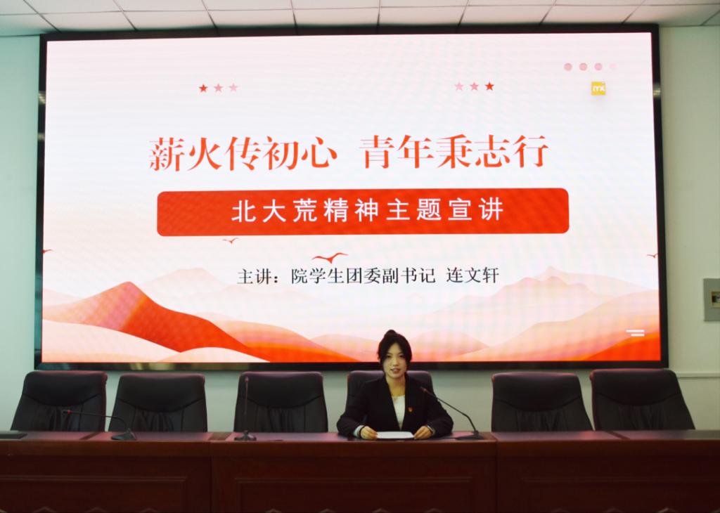 連文軒宣講的主題是“學(xué)習(xí)貫徹北大荒精神”,講述了以羅海榮為代表的拓荒者們通過不懈的奮斗和努力,創(chuàng)造了從“荒”到“倉”的奇跡,也鑄就了“艱苦奮斗、勇于開拓、顧全大局、無私奉獻(xiàn)”的北大荒精神。她號召大家要在學(xué)習(xí)、生活和工作中傳承北大荒精神,接過歷史的接力棒,在新時代新征程上,以拳拳赤子之心為強(qiáng)國建設(shè)、民族復(fù)興努力學(xué)習(xí),在實(shí)踐中展現(xiàn)青年擔(dān)當(dāng)!
