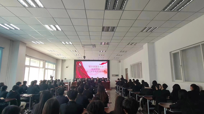 經(jīng)濟(jì)學(xué)院于2024年4月19日召開(kāi)經(jīng)濟(jì)學(xué)院第三次學(xué)生代表大會(huì),大會(huì)選舉產(chǎn)生了經(jīng)濟(jì)學(xué)院學(xué)生會(huì)第三屆委員會(huì)委員及主席團(tuán)成員。本次學(xué)生代表大會(huì)由經(jīng)濟(jì)學(xué)院第二屆學(xué)生會(huì)主席團(tuán)成員鄂慧涵主持,學(xué)院團(tuán)委書(shū)記姚春艷,團(tuán)委副書(shū)記封燁,學(xué)生會(huì)指導(dǎo)教師劉鑫,21級(jí)輔導(dǎo)員張超蕊、徐世杰,22級(jí)輔導(dǎo)員張文媛以及校學(xué)生會(huì)執(zhí)行主席溫叢旭出席會(huì)議。正式會(huì)議前已召開(kāi)大會(huì)預(yù)備會(huì)議,參會(huì)的50名正式代表均按照選舉程序進(jìn)行了資格審查并依規(guī)行使權(quán)力。同時(shí)在本次會(huì)議上進(jìn)行了經(jīng)濟(jì)學(xué)院學(xué)生會(huì)第三屆委員會(huì)委員及主席團(tuán)成員的選舉并產(chǎn)生了新的學(xué)生干部團(tuán)隊(duì)。指導(dǎo)老師劉鑫在會(huì)議上發(fā)言,對(duì)于本次學(xué)生代表大會(huì)籌備委員會(huì)情況進(jìn)行總結(jié),并對(duì)新一屆的主席團(tuán)成員提出工作展望。會(huì)議最后,學(xué)院團(tuán)委書(shū)記姚春艷老師進(jìn)行總結(jié)發(fā)言,對(duì)過(guò)去一直為經(jīng)濟(jì)學(xué)院學(xué)生會(huì)工作做出巨大貢獻(xiàn)的學(xué)生干部提出高度贊揚(yáng),對(duì)于新一屆主席團(tuán)成員提出要求與殷切盼望,希望在接下來(lái)的日子中經(jīng)濟(jì)學(xué)院學(xué)生會(huì)在學(xué)生群體中發(fā)揮榜樣作用,在工作上再創(chuàng)佳績(jī)。