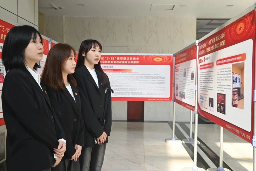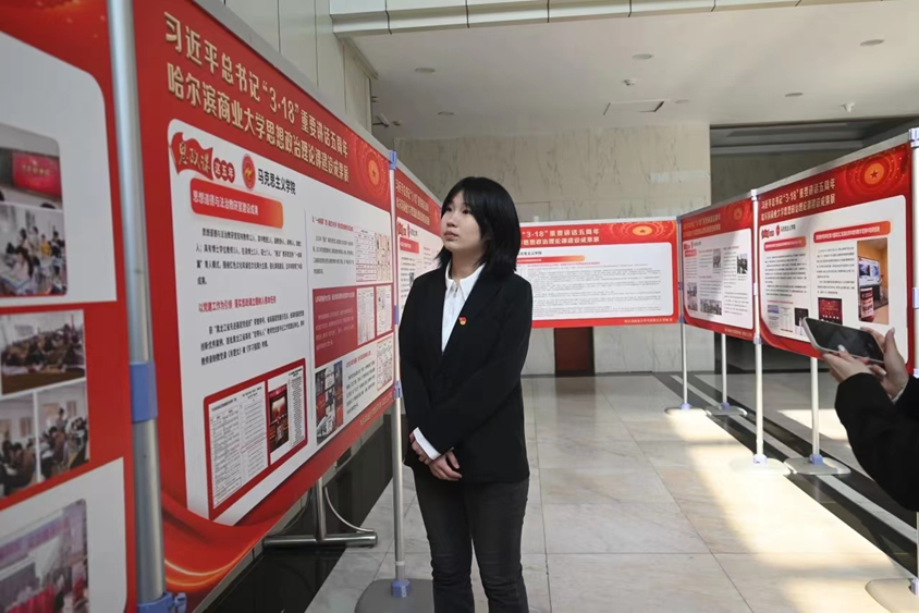2024年3月20日正值習近平總書記“3·18”重要講話發(fā)表五周年之際,經(jīng)濟學院開展“重溫3·18重要講話,以‘大思政課’培育時代新人”活動,由張春建老師帶領經(jīng)濟學院學生黨建辦公室組織黨員師生參觀“哈爾濱商業(yè)大學思想政治理論課建設成果展。跟隨展覽的腳步,帶領大家重溫講話精神,暢談所思所感。