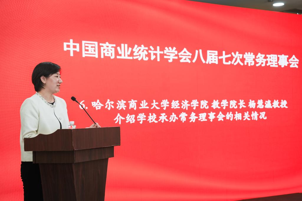 哈爾濱商業(yè)大學(xué)經(jīng)濟(jì)學(xué)院教學(xué)院長楊慧瀛教授、經(jīng)濟(jì)統(tǒng)計學(xué)教研室主任張恩英教授參加了本次常務(wù)理事會。楊慧瀛副院長代表學(xué)院在會上介紹了我校及我院辦學(xué)歷程、在學(xué)科建設(shè)、教學(xué)科研等方面取得的豐碩成果,以及我院承辦學(xué)會八屆六次會長辦公會暨九次常務(wù)理事會的相關(guān)情況,并誠摯邀請中國商業(yè)統(tǒng)計學(xué)會會長、副會長、秘書長、各位常務(wù)理事及所有與會同仁明年此時到美麗的“爾濱”參會。