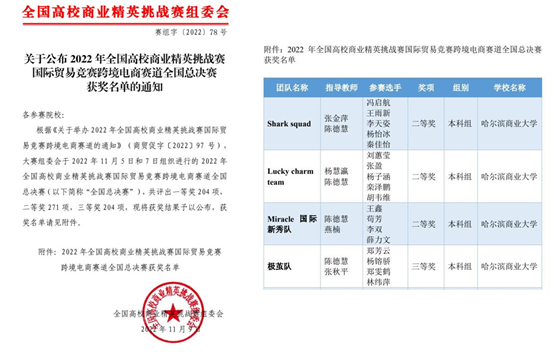 經(jīng)濟(jì)學(xué)院國(guó)際經(jīng)濟(jì)與貿(mào)易專(zhuān)業(yè)師生參加全國(guó)總決賽獲獎(jiǎng)名單