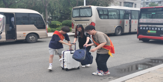 志愿團(tuán)隊(duì)細(xì)致統(tǒng)計(jì)了畢業(yè)生離校時(shí)間,根據(jù)學(xué)校每天四次的送站發(fā)車(chē)時(shí)間排出時(shí)間表,幫助畢業(yè)生整理行李,搬運(yùn)物品,確保他們?cè)趯W(xué)弟學(xué)妹的溫暖傳導(dǎo)中,滿載學(xué)校的深情踏上人生新征程。在與畢業(yè)生的互動(dòng)中,學(xué)弟學(xué)妹們和學(xué)長(zhǎng)學(xué)姐聊著天,暢想著未來(lái),交流著感情,分享著經(jīng)驗(yàn)。
