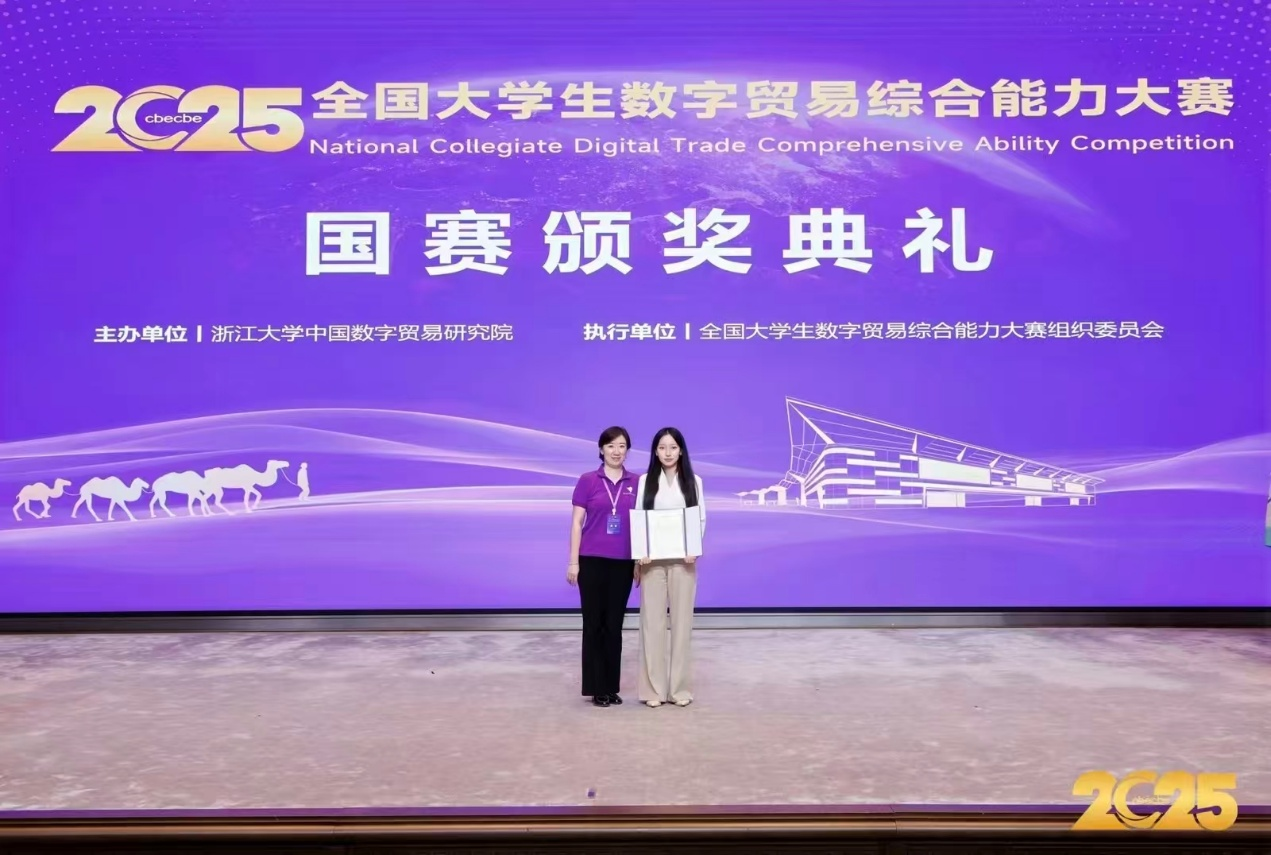 此次佳績的取得,不僅彰顯了我院師生創(chuàng)新的思維、扎實過硬的專業(yè)技能與團結(jié)協(xié)作的精神風貌,更是學院積極順應(yīng)全國數(shù)字貿(mào)易發(fā)展潮流,深化產(chǎn)教融合、科教融匯,著力培養(yǎng)兼具創(chuàng)新精神與實踐能力的高素質(zhì)數(shù)字貿(mào)易人才的顯著成果。展望未來,我院將以此為契機,持續(xù)深化教育教學改革,不斷探索高素質(zhì)人才培養(yǎng)新路徑,為培養(yǎng)更多適應(yīng)新時代發(fā)展需求的創(chuàng)新型、實踐型商科英才而不懈奮斗。