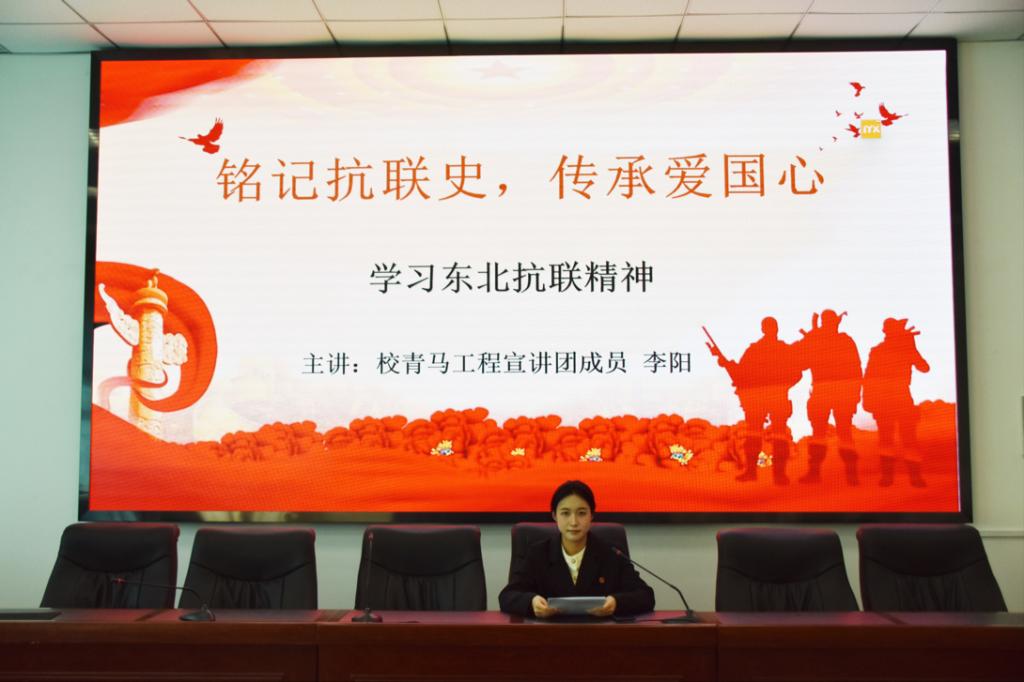 李陽以“學(xué)習(xí)東北抗聯(lián)精神”為主題向大家講述了東北抗聯(lián)將士們?cè)谄D苦環(huán)境下英勇斗爭(zhēng)、不屈不撓的壯麗篇章以及他們?yōu)槊褡濯?dú)立和人民幸福所付出的巨大犧牲。他以翔實(shí)的歷史資料為基礎(chǔ),通過生動(dòng)的案例和深入淺出的分析,全面解讀了東北抗聯(lián)精神的豐富內(nèi)涵和時(shí)代價(jià)值,并號(hào)召同學(xué)們深入了解抗聯(lián)精神的歷史背景和時(shí)代價(jià)值,將抗聯(lián)精神轉(zhuǎn)化為實(shí)際行動(dòng),勇于擔(dān)當(dāng)、積極作為,為實(shí)現(xiàn)中華民族偉大復(fù)興的中國(guó)夢(mèng)貢獻(xiàn)青春力量。