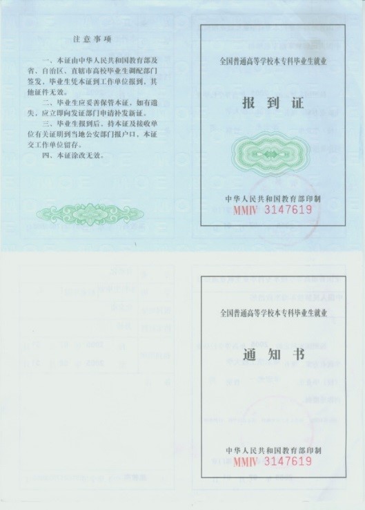 (4)是畢業(yè)生畢業(yè)資格的證明,《就業(yè)通知書》(報到證的下聯(lián))是存入個人檔案的必備材料。