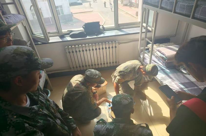 為了提高學(xué)生們的執(zhí)行力,培養(yǎng)秩序感,形成良好的生活習(xí)慣。軍訓(xùn)期間,教官與學(xué)院新生輔導(dǎo)員張超蕊老師與周浩楠老師協(xié)同對學(xué)生宿舍內(nèi)務(wù)整理高標(biāo)準(zhǔn)、嚴(yán)要求,以實際行動學(xué)習(xí)部隊優(yōu)良的傳統(tǒng)作風(fēng)。