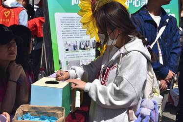 5月23日,學(xué)院在步行街開展“以德育心,繪美好青春”主題戶外心理科普活動(dòng),現(xiàn)場(chǎng)開展“擁抱陌生人”活動(dòng)、心靈樹洞等活動(dòng),讓參與的同學(xué)們寫下想傾訴的話語(yǔ)投入“樹洞”,進(jìn)行情緒的梳理和壓力的釋放,“擁抱陌生人”的活動(dòng)讓參與的同學(xué)從擁抱中汲取力量,同時(shí)現(xiàn)場(chǎng)準(zhǔn)備了精美禮品和卡片,發(fā)放心理健康相關(guān)宣傳手冊(cè),現(xiàn)場(chǎng)累計(jì)參與超200人次。