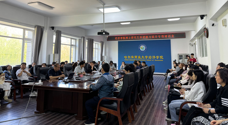 5月23日下午,為全面提升我院博士研究生學(xué)術(shù)素養(yǎng),拓寬研究視野,提高學(xué)術(shù)論文寫作水平,經(jīng)濟(jì)學(xué)院邀請哈爾濱商業(yè)大學(xué)金融學(xué)院仲深教授,在學(xué)院1209會(huì)議室舉辦了博士研究生科研能力提升專項(xiàng)培訓(xùn)會(huì)。經(jīng)濟(jì)學(xué)院在讀博士研究生、2023級(jí)碩士研究生以及部分學(xué)院教師參加本次培訓(xùn)會(huì),會(huì)議由韓朝亮副院長主持。