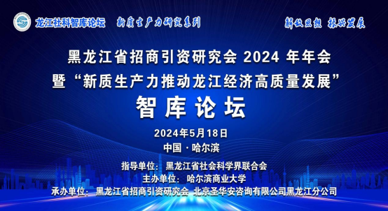 5月18日,黑龍江省招商引資研究會(huì)2024年年會(huì)暨“新質(zhì)生產(chǎn)力推動(dòng)龍江經(jīng)濟(jì)高質(zhì)量發(fā)展”智庫(kù)論壇在黑龍江省電子商務(wù)總部基地召開(kāi)。本次論壇是“新質(zhì)生產(chǎn)力系列”龍江社科智庫(kù)論壇之一,是全省社科界聚焦加強(qiáng)新質(zhì)生產(chǎn)力研究、賦能龍江高質(zhì)量發(fā)展開(kāi)展的系列學(xué)術(shù)活動(dòng)。論壇由省社科聯(lián)指導(dǎo),哈爾濱商業(yè)大學(xué)主辦,省招商引資研究會(huì)、北京圣華安咨詢有限公司黑龍江分公司承辦。