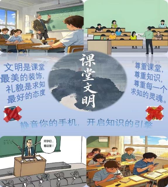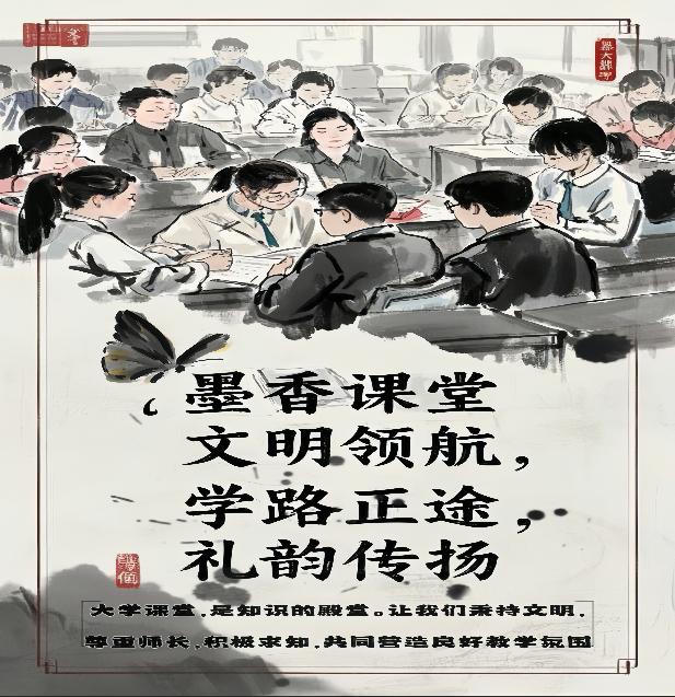 學(xué)院組織開展以“課堂文明”為主題的原創(chuàng)海報設(shè)計活動,同學(xué)們用手中的畫筆和設(shè)計軟件,繪出對文明課堂的理解,這些作品不僅是藝術(shù)創(chuàng)作,更是文明的“代言人”。
