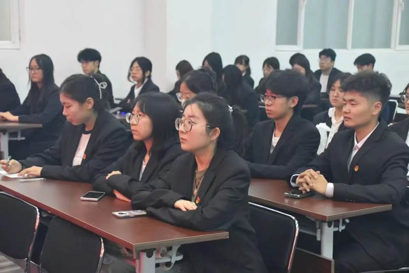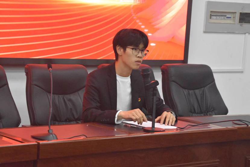 隨后,與會干部進行思想政治理論學(xué)習(xí),由學(xué)院學(xué)生會主席邵睿作為學(xué)生黨員干部代表、學(xué)生會主席團成員面向與會干部做題為《以身作則、慎始敬終》的專題領(lǐng)學(xué)。從重溫黨史故事、回顧英雄事跡、原著理論學(xué)習(xí)、盡職履責(zé)擔(dān)當(dāng)四個方面開展專題思想政治理論學(xué)習(xí),號召全體學(xué)生干部要堅定不移跟黨走,矢志奮斗新時代,將對黨忠誠融于個人血脈,將甘于奉獻融于個人生活,將使命擔(dān)當(dāng)融于個人理想,書寫為中國式現(xiàn)代化挺膺擔(dān)當(dāng)?shù)那啻浩隆?/span>