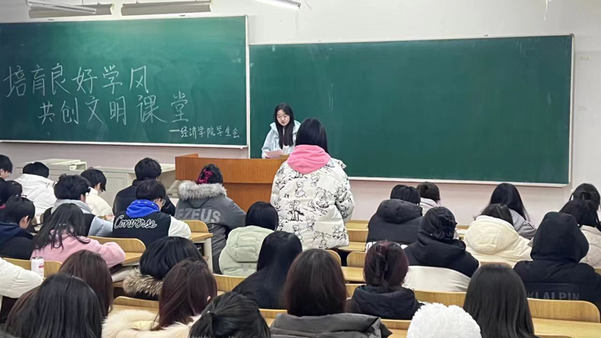 2024年2月26日,經(jīng)濟學(xué)院學(xué)生會于3206教室舉辦了“加強學(xué)風(fēng)建設(shè),共創(chuàng)文明課堂”主題學(xué)習(xí)會。本次會議由經(jīng)濟學(xué)院學(xué)生會指導(dǎo)教師劉鑫老師主持,學(xué)生會全體成員參加。活動旨在交流分享學(xué)習(xí)感悟,提升學(xué)生自主學(xué)習(xí)意識和學(xué)習(xí)能力水平,持續(xù)深化優(yōu)良學(xué)風(fēng)建設(shè)。在學(xué)習(xí)會上,學(xué)生代表積極發(fā)言,深入探討了學(xué)風(fēng)建設(shè)對于個人成長和學(xué)院發(fā)展的重要意義。分享環(huán)節(jié)中,同學(xué)們積極交流了自己的學(xué)習(xí)方法和技巧,如設(shè)定合適的學(xué)習(xí)目標、整理知識框架、利用碎片時間學(xué)習(xí)等。會議最后,劉鑫老師對本次會議進行總結(jié),再一次強調(diào)了學(xué)風(fēng)建設(shè)、文明課堂建設(shè)對于提高學(xué)生成績和自主學(xué)習(xí)能力,以及培育學(xué)生良好學(xué)習(xí)習(xí)慣等方面的重要性和積極作用,要求學(xué)生會干部發(fā)揮帶頭作用,自覺投身文明課堂建設(shè)。